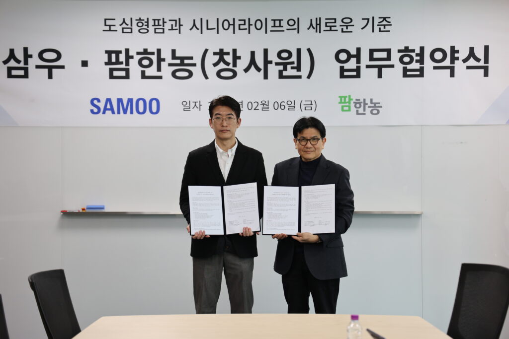 팜한농 – 삼우건축, 시니어 맞춤형 도심형팜 사업 협약 (주)팜한농(대표이사 김무용)이 지난 2월 6일 삼우종합건축사사무소(대표 손창규)와 ‘도심형팜 사업 적용 및 확대에 관한 협약’을 체결했다. 서울 강동구 삼우종합건축사사무소에서 진행된 이번 협약에 따라, 양사는 시니어에 특화된 도심형팜 모델 개발을 목표로 협업할 계획이다. 팜한농은 도심형팜 ‘창사원’ 운영 노하우를 바탕으로 시니어 맞춤형 작물 재배 및 체험 프로그램을 기획하고, 삼우종합건축사사무소는 행동 […]more